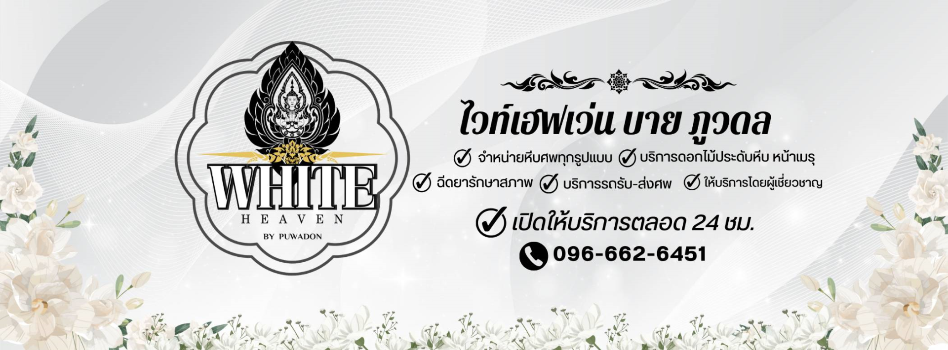 ภูวดล หีบศพ บริการ 24 ชั่วโมง เราจะดูแลคนที่ท่านรัก อย่างสุดความสามารถของเรา ลูกค้ามั่นใจได้ว่า ประสบการณ์ คุณภาพ และบริการของเรา “ประทับใจ คุ้มค่า คุ้มราคา”